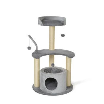 Aufgrund der 3 Plattformen ist der Kratzubaum Evie für mehrere Katzen geeignet und bietet mit seinen starken Sisalsäulen die perfekte Möglichkeit die Krallenpflege Ihrer Katze zu unterstützen. Im Inneren der Höhle befindet sich ein herausnehmbares und waschbares Kissen. Die bequeme Hängematte auf der Höhle rundet das Gesamtpaket ab und sorgt für gemütliche Ruhephasen.