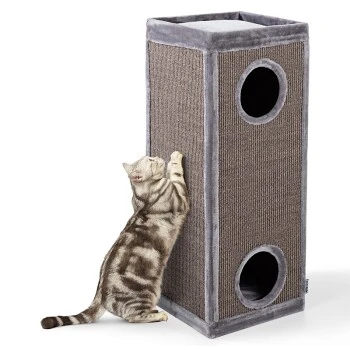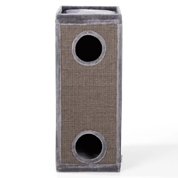 Diese Kratztonne lässt sich hervorragend in jeden Wohnraum integrieren. Dabei kann diese platzsparend in Ecken platziert werden. Eine Montage ist nicht erforderlich. Die gepolsterten Liegeflächen laden Ihren Stubentiger zum Ausruhen, Schlafen und Spielen ein. Der rundum verklebte Sisalteppich bietet große Kratzflächen und lenkt das natürliche Kratzbedürfnis Ihrer Katze von Möbeln auf das Kratzelement um. Die ANIONE Kratztonne Aurelio ist für kleine bis große Katzen geeignet.