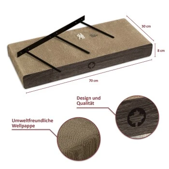 das Beste: sollte Ihre Katze mal zu übereifrig gewesen sein und das Kratzmöbel hierdurch zu stark in Mitleidenschaft gezogen worden sein, gibt es Ersatzkratzpappen, welche ohne eine neue Wandhalterung geliefert werden, sodass Sie diese ganz einfach austauschen können.