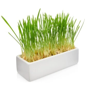 Die zusätzliche eckige Schale kann für Katzengras oder auch Trockenfutter genutzt werden.