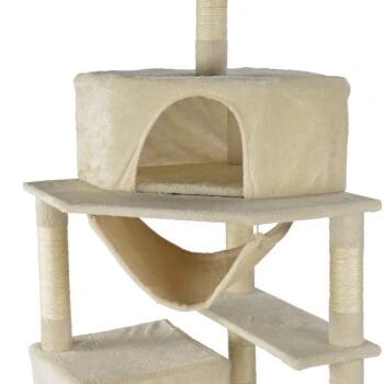 Der Kratzbaum ist gleichzeitig funktional und kompakt. Er zeichnet sich durch verschiedene Kletter-, Spiel- und Ruhebereiche aus. Ob hoch hinaus oder eher in Bodennähe, hier findet jeder Stubentiger seinen Lieblingsplatz.