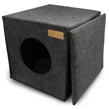 Die KaraLuna Katzenhöhle aus hochwertigem Filz bietet Deiner Katze einen kuscheligen und rundum geschützten Schlafplatz – auch für große Katzen. Der weiche Filz (100% Polyester) und das mitgelieferte Kissen sorgen für die Extraportion Gemütlichkeit. Deine Katze liegt kuschelig weich und kann geschützt vor neugierigen Blicken ihre Umgebung aus der Filzhöhle beobachten. Kombiniere die Katzenhöhle einfach mit einem Regal oder stelle die Katzen Höhle freistehend in Deine Wohnung (Hinweis: Deine Katze kann nicht AUF der Höhle sitzen). Die KaraLuna Katzenhöhle ist in 4 Farben erhältlich. Ob dezentes beige, zeitloses dunkelgrau, modernes hellgrau oder kräftiges dunkelrot – Entscheide Dich für eine Farbe oder kombiniere die Katzen Höhlen nach Belieben.