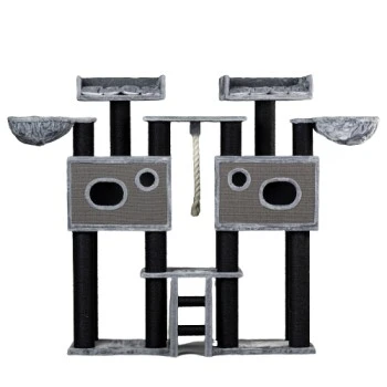 Dieser Kratzbaum bietet viele Kratz-Optionen, um die Sisalstamme oder die mit Sisal bedeckten Spielhäuser zu erklimmen.