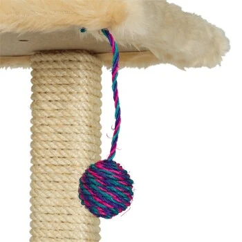 Die große fünfeckige Wohnhöhle von Silvio (ca. 36×36(B53) x H28 cm) reicht bis in den letzten Winkel. Zwei Liegeplatten (1x36x36cm, 1x30x30cm) sind zum Relaxen und Beobachten gedacht. Die große Bodenplatte (ca. 36x36cm) sorgt im Zusammenhang mit dem Deckenspanner für den entsprechenden Halt des Eckkratzbaumes.